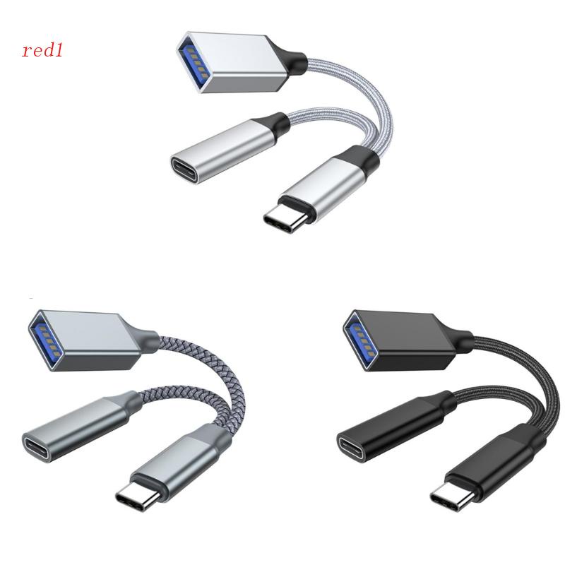 Adaptador Usb C OTG Vermelho1 Com Carregamento Rápido PD10W 2 Em 1 Splitter Para Laptop