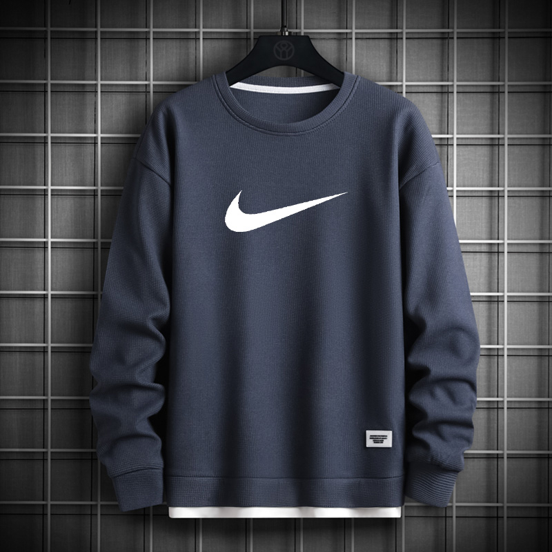 [Entrega Rápida de qualidade genuína] Versão coreana simples Fake Two-Piece Hot Item Waffle Sweatshirt Trendy Long Sleeve