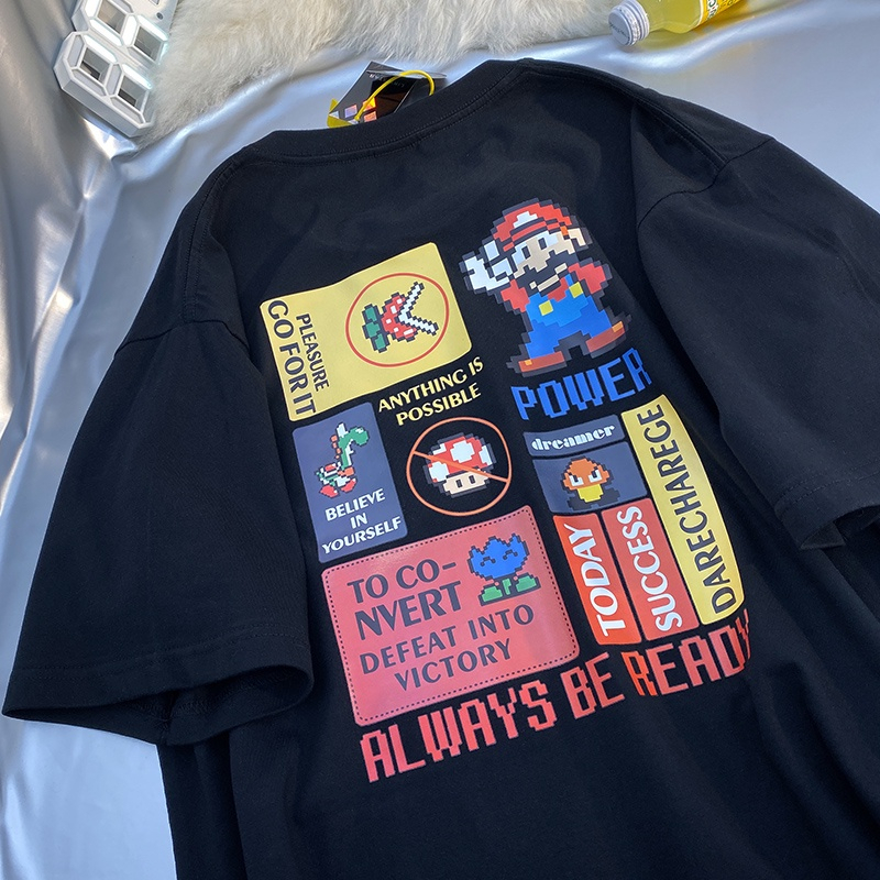 Camiseta Algodão Camisa Básica Algodão Unissex Jogo Filme Mario Always Be Ready Power