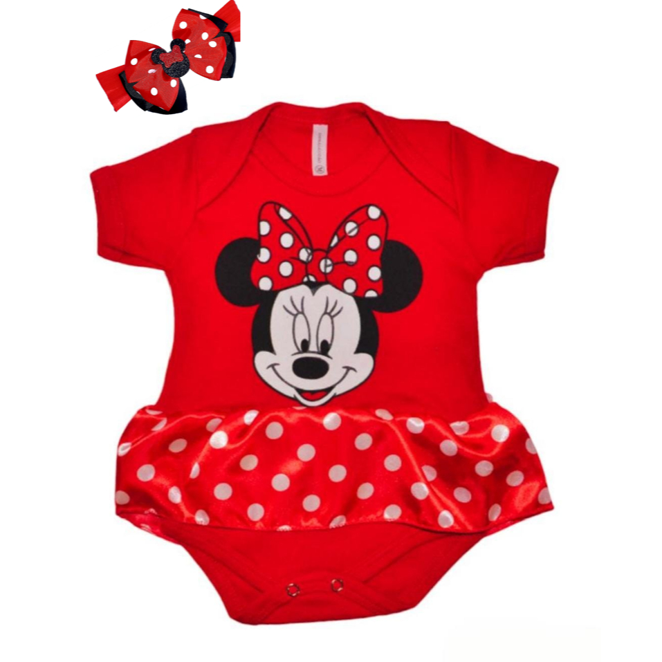 Body Bebê Minnie Body + Laço Temático de Mesversário Roupa de bebe Menina