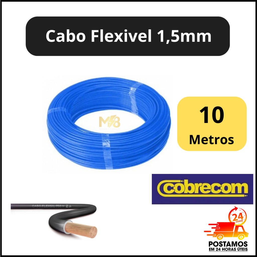 Fio Elétrico Cabo Flexivel 1,5mm X 10 Metros Cobrecom ORIGINAL Fio Azul