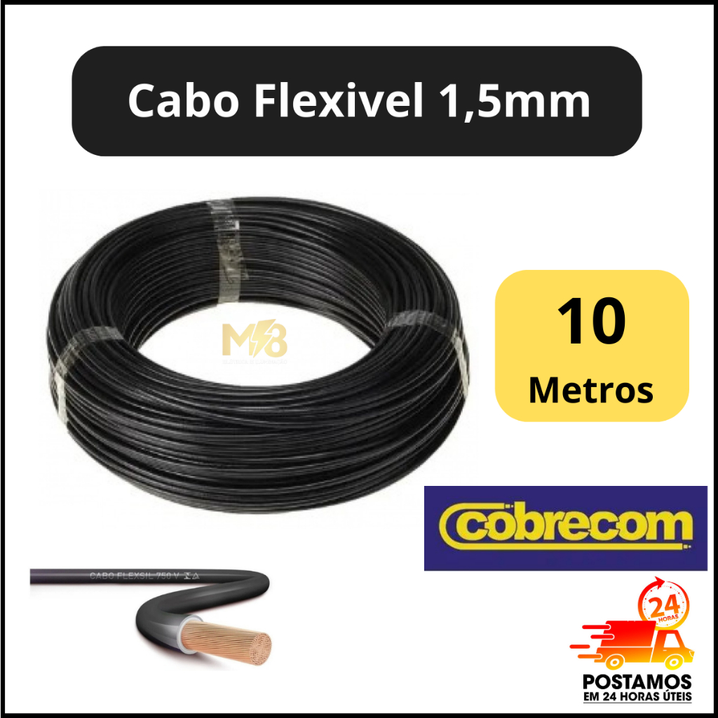 Fio Elétrico Cabo Flexivel 1,5mm X 10 Metros Cobrecom ORIGINAL Fio Preto