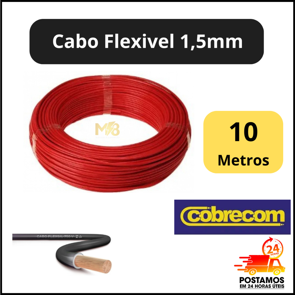 Fio Elétrico Cabo Flexivel 1,5mm X 10 Metros Cobrecom ORIGINAL Fio Vermelho