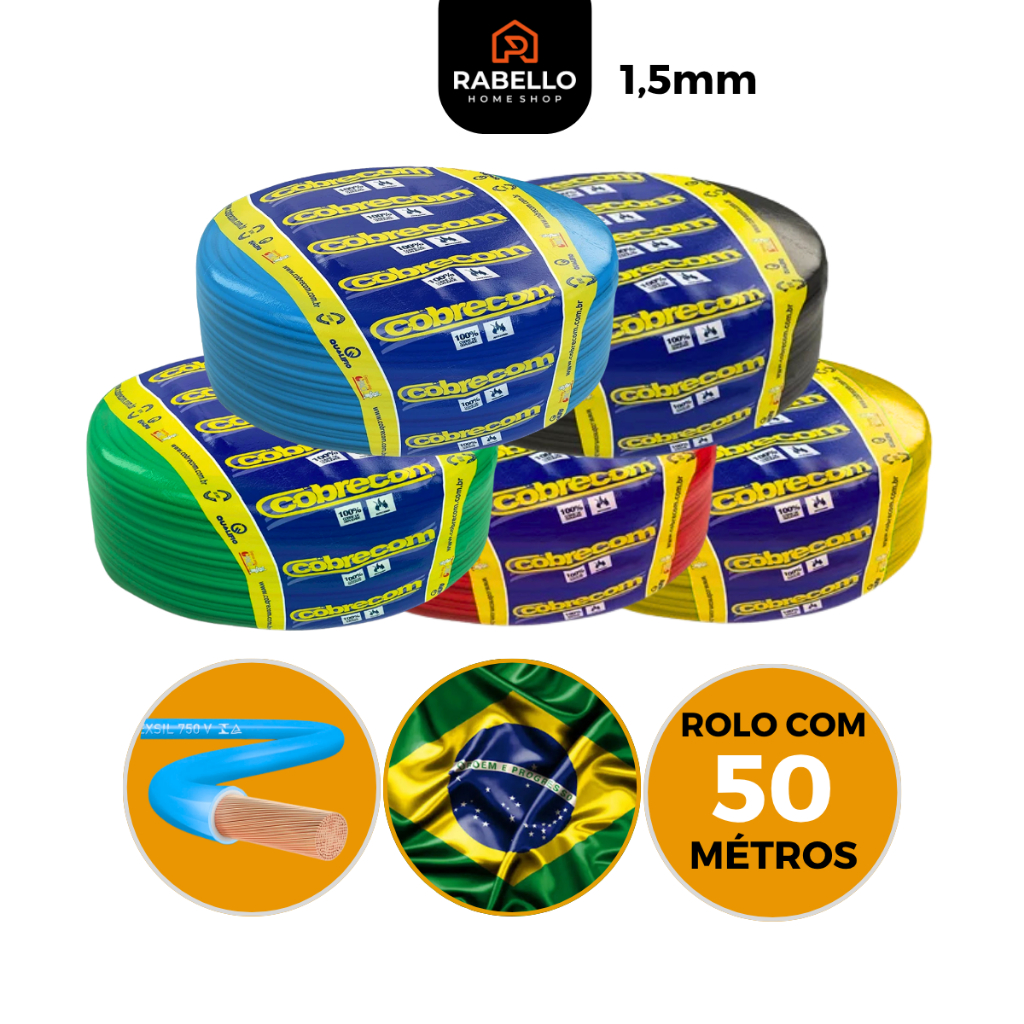Fio Eletrico Cabo Flexivel 1,5mm X 50 Metros Cobrecom Certificado