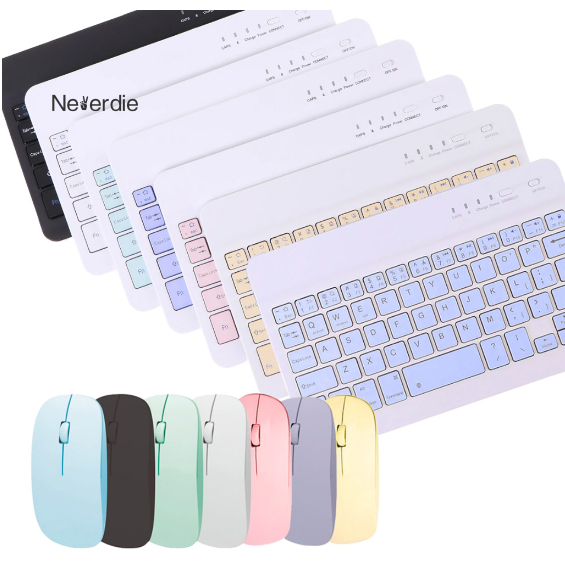 Kit Teclado e Mouse Sem Fio Bluetooth Colorido Macaron Para PC iPad Tablet Notebook
