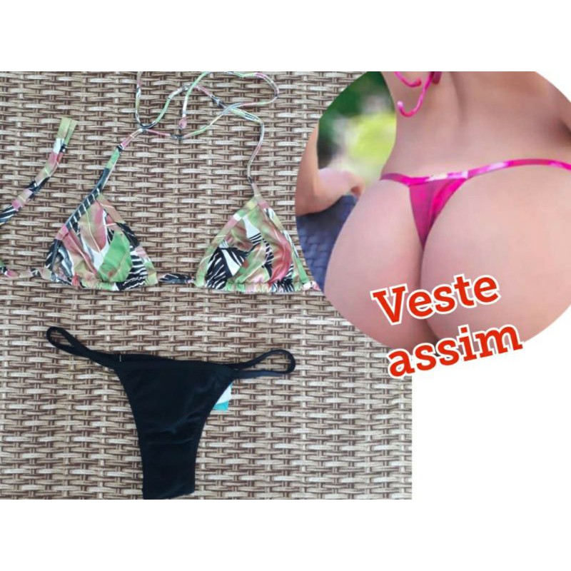 Biquíni Fio Dental Marquinha de Fita Cores Praia Asa Delta Feminino Cortininha Estampado Biquini