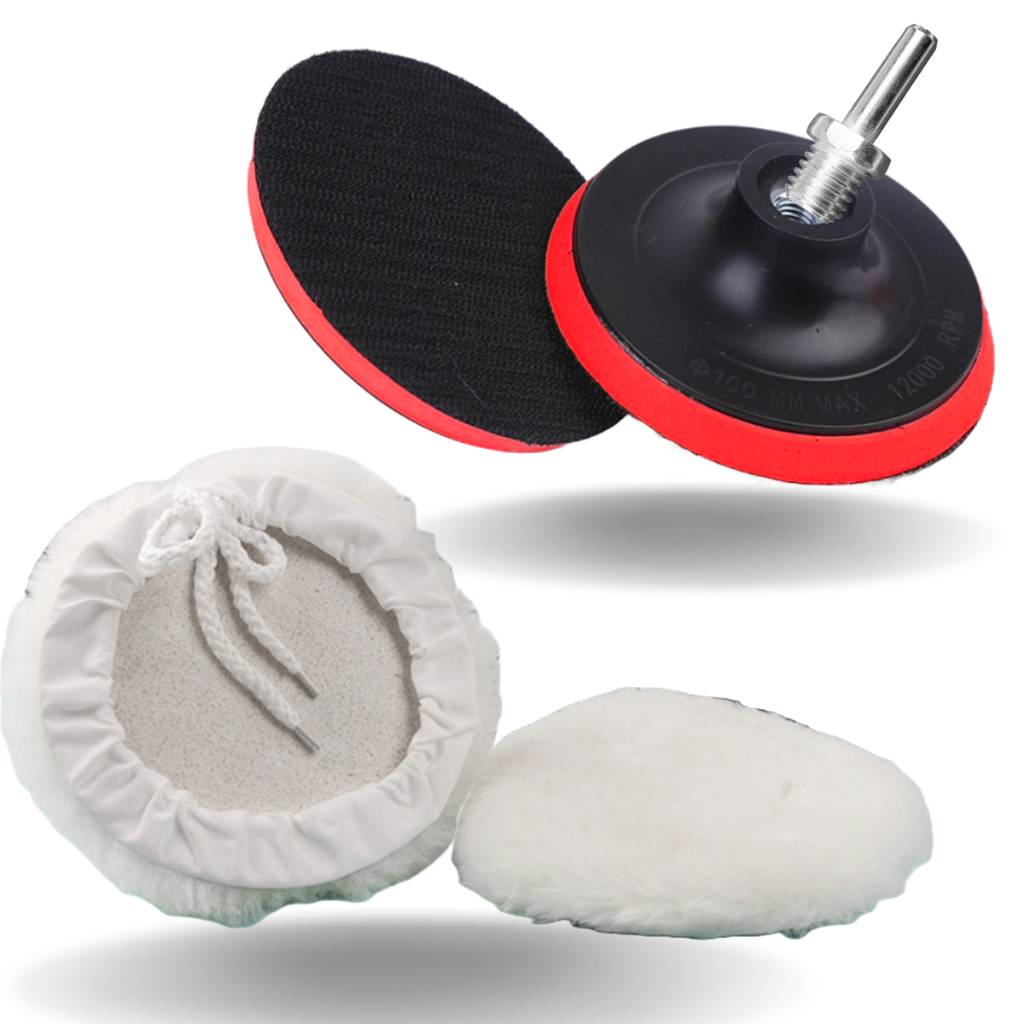 Kit Boina Lã Polimento Automotivo 125mm 5 Polegadas Com Suporte Velcro Para Politriz Furadeira e Parafusadeira