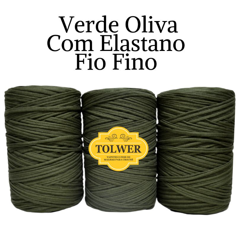 Fio De Malha Residual Linha De Crochê Contendo 1 Cone De 500g Cor Verde Oliva com Elastano