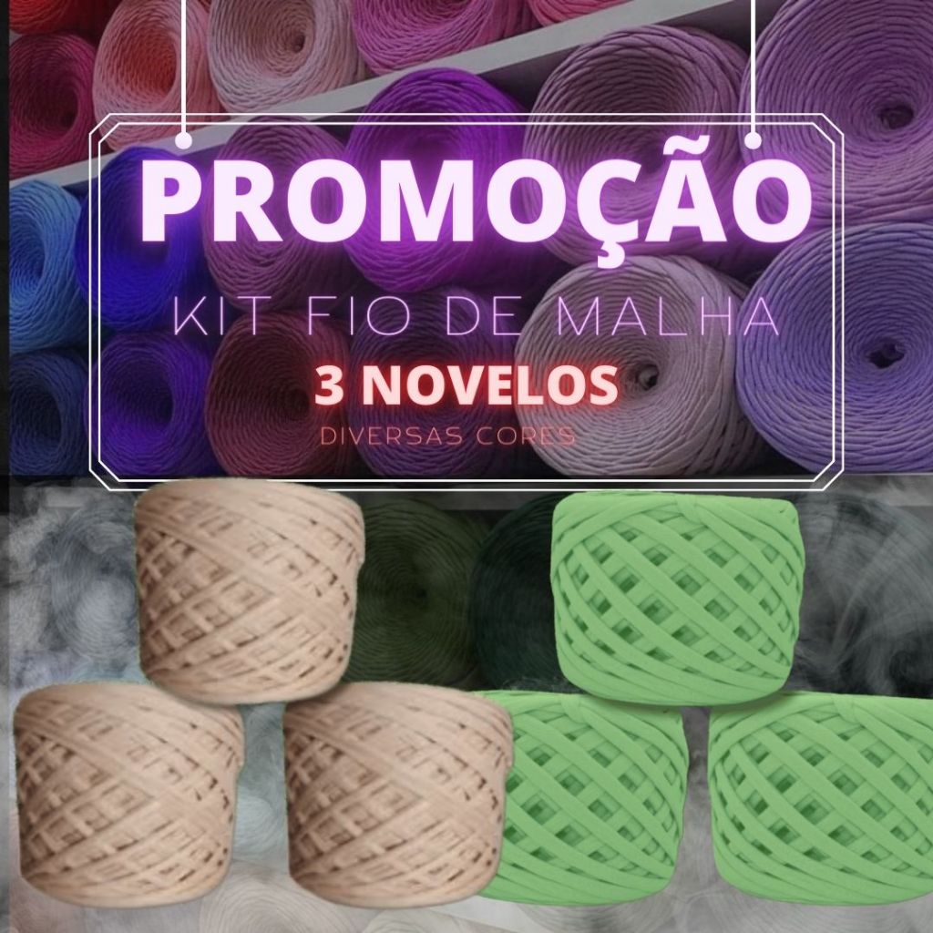 linha para croche fio de malha selecionada -kit com 3 unidades fio de malha com elastano rolote