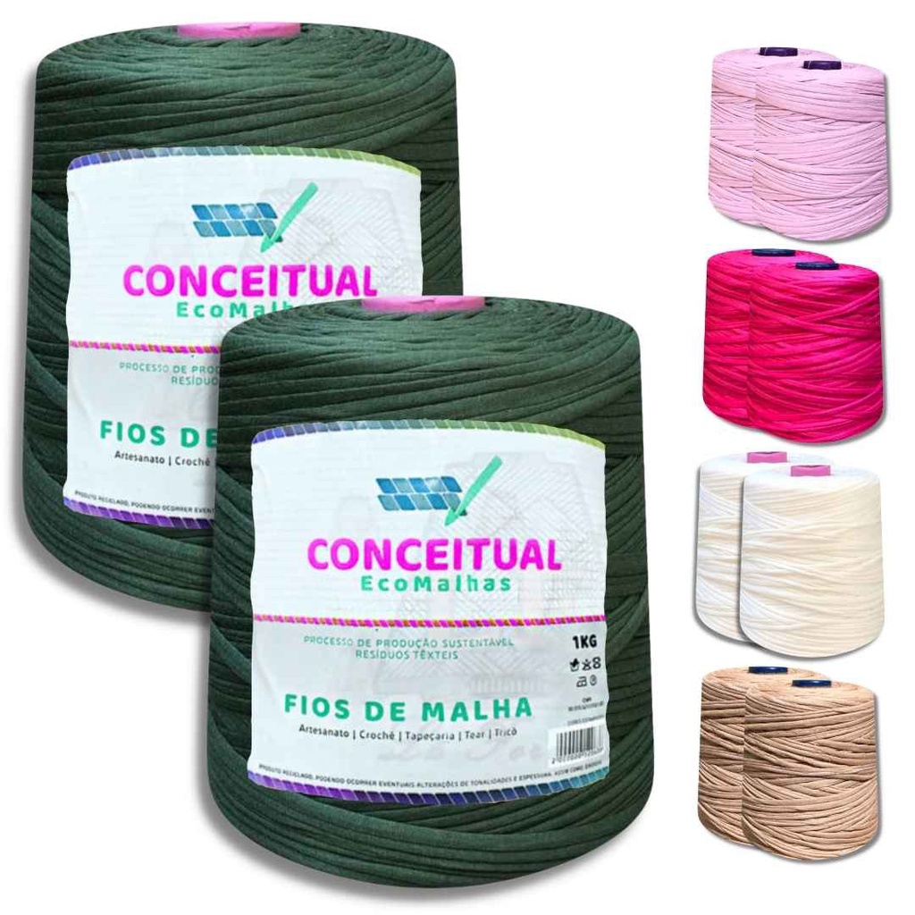 Kit 2 Fio de Malha Residual marca Conceitual - Cores 3 - para bolsas de crochê, trico e macrame, cestos, tapetes e artesanato