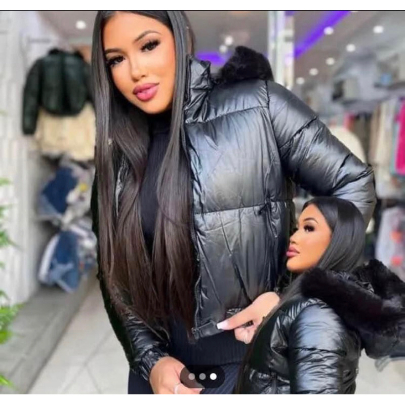 Jaqueta Puffer feminina bobona o forrado com capuz de pelinho