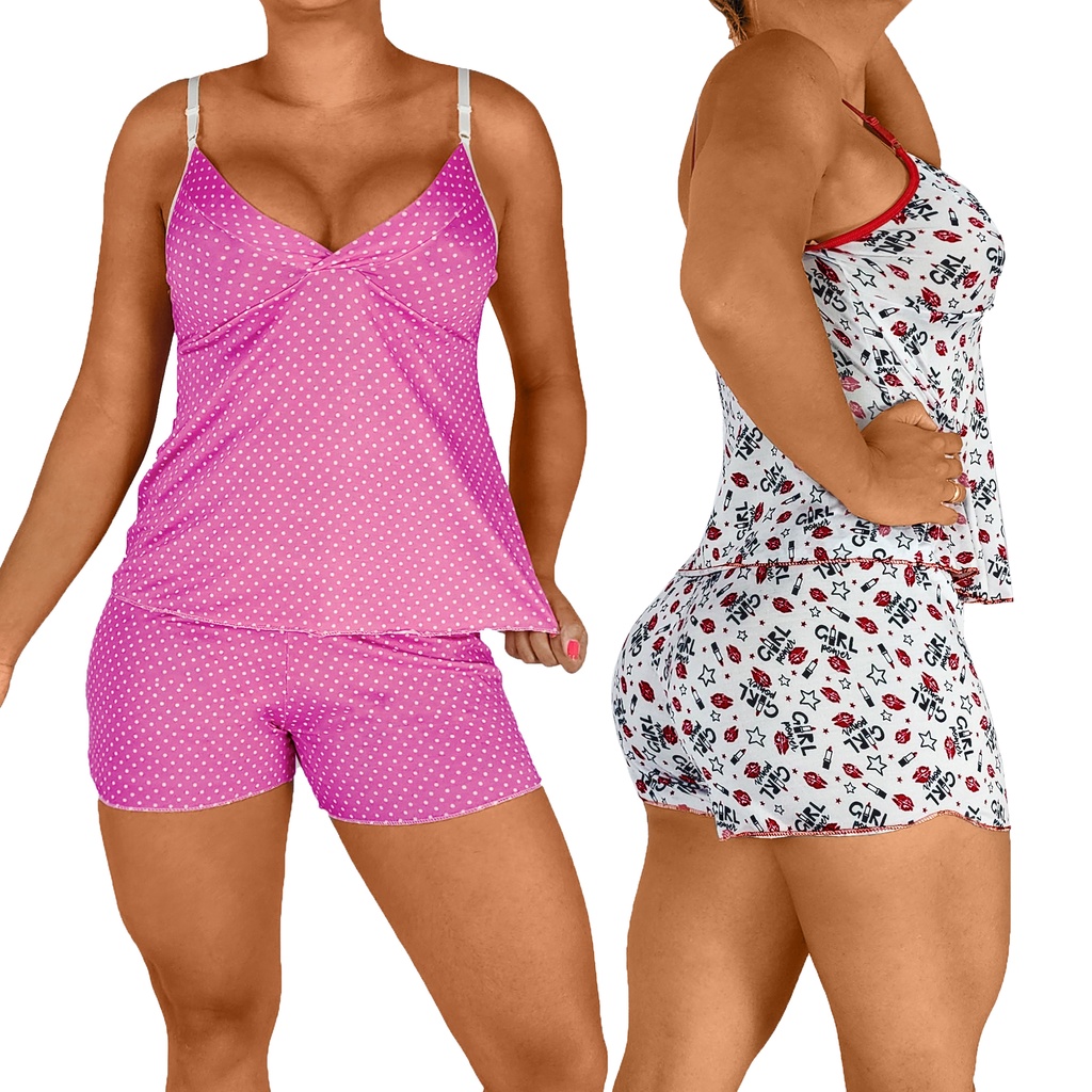 KIT 2 Baby Doll Plus Size com Alça Reguladora Short Doll Conjunto Feminino Pijama Estampado Fresquinho