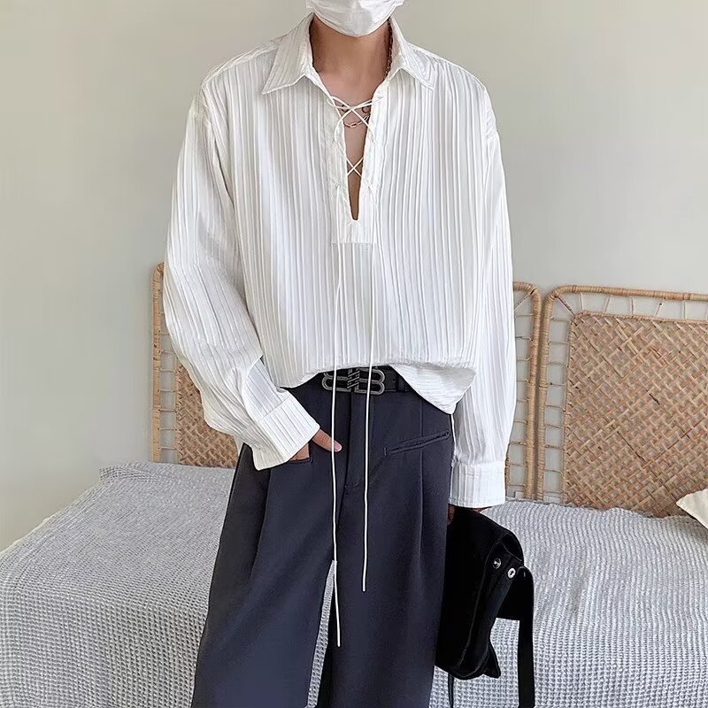 Camisa de manga comprida solta estilo coreano leve e maduro Camisa de manga comprida solta para homens no início do outono INS Ruffian Handsome Casual Non-Iron Solid Color Shirt