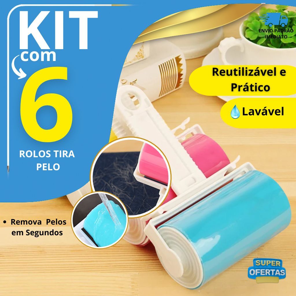 Kit 6 Rolos Adesivo Tira Pelo Reutilizável Lavável Remove Pelos, Cabelos E Sujeiras De Roupas Sofás