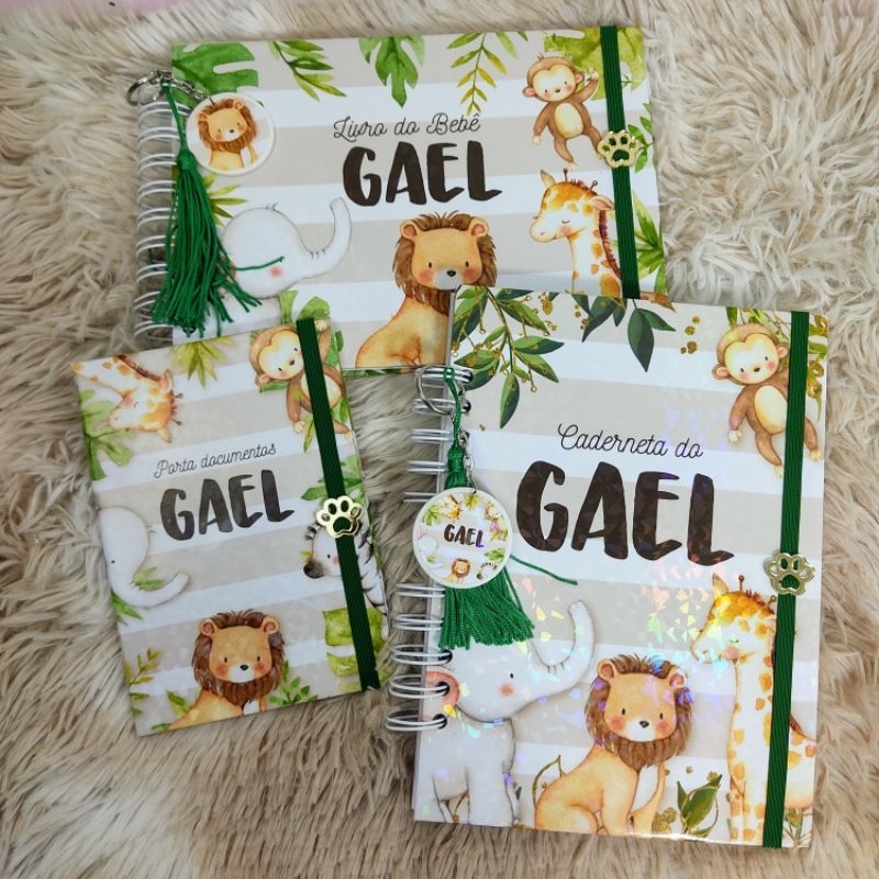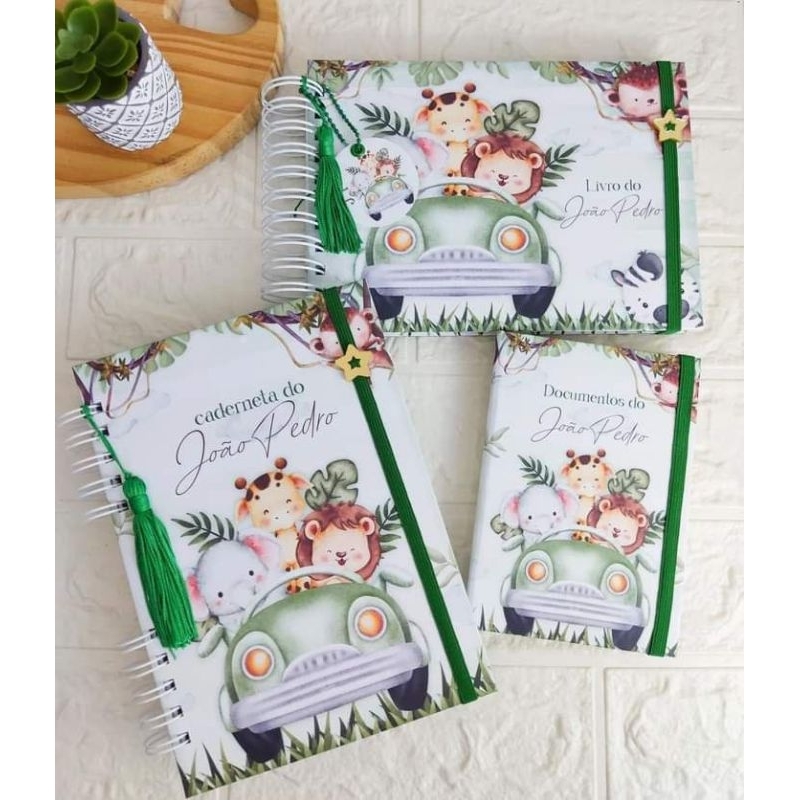 KIT CADERNETA DE VACINAÇÃO + LIVRO DO BEBÊ | Safari Menino