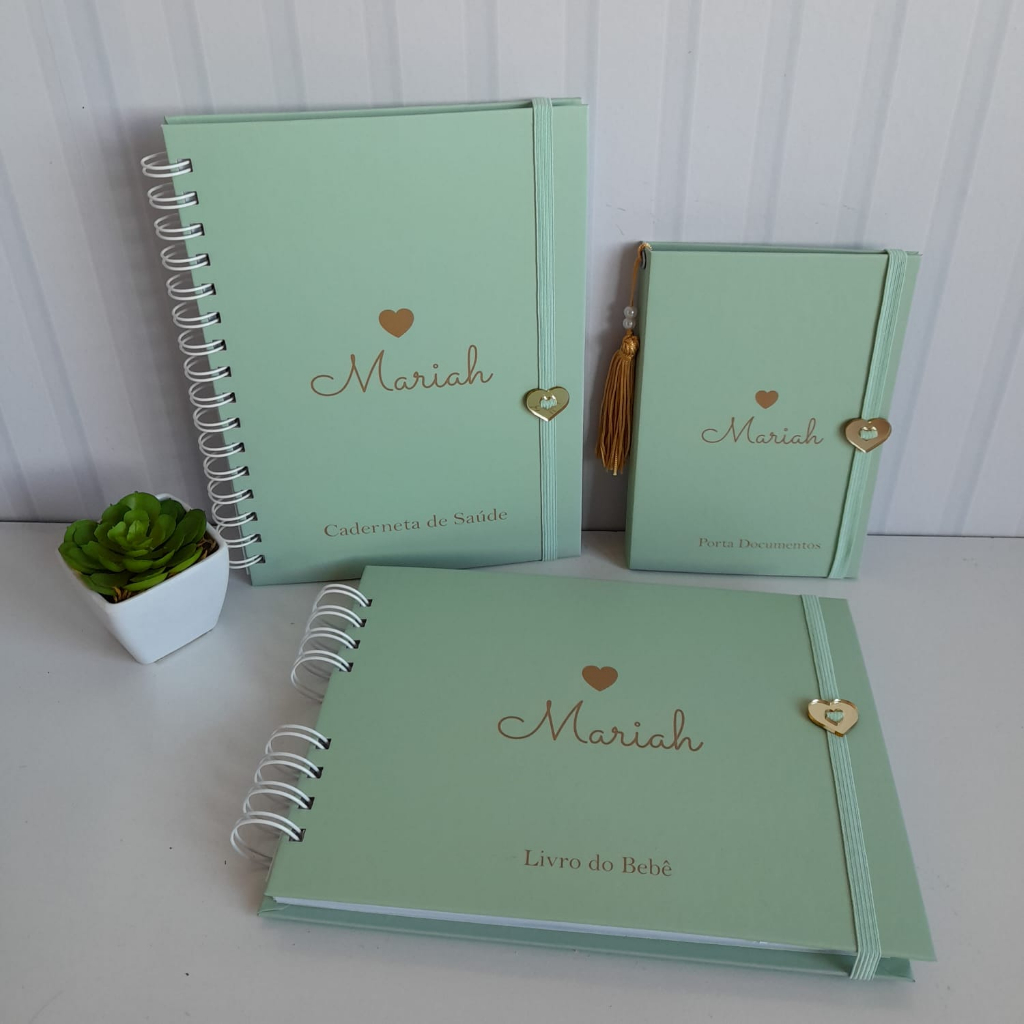 kit maternidade: caderneta de vacinação, livro do bebê, porta documentos