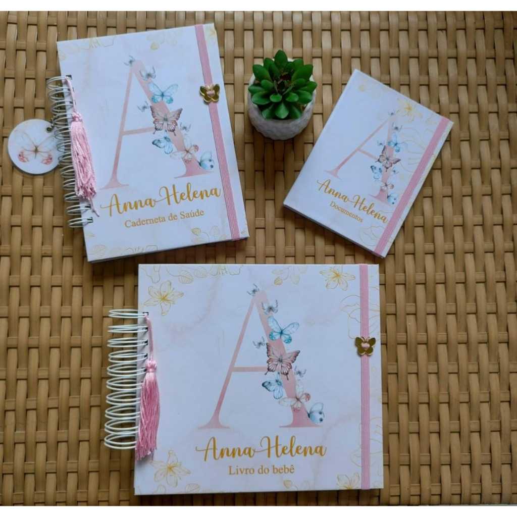 KIT MATERNIDADE COMPLETO LIVRO DO BEBÊ , CADERNETA E PORTA DOCUMENTOS PERSONALIZADOS COM TEMA E NOME