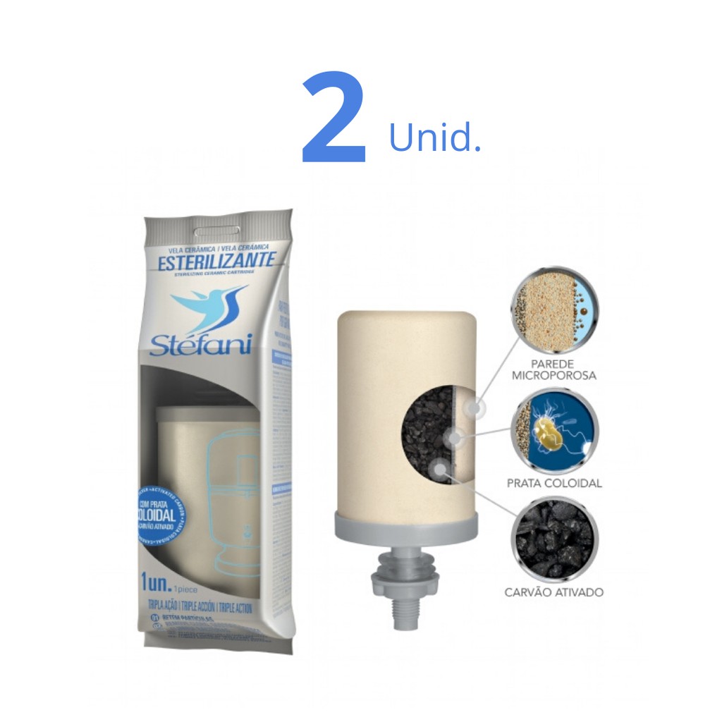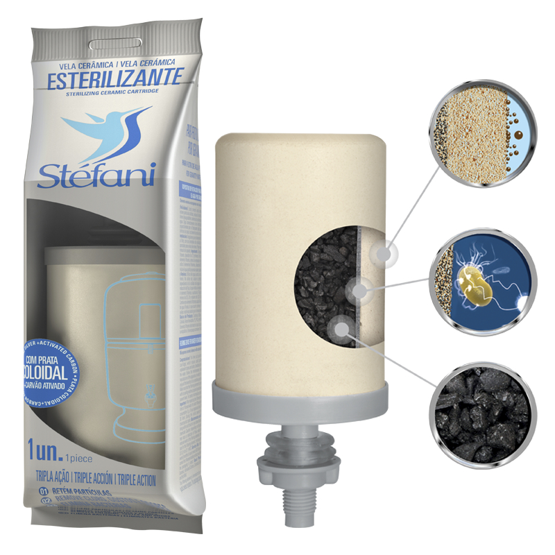 Vela Esterilizante Tripla Ação Stéfani Original Prata Carvão Filtro De Barro São João São Pedro Todas As Marcas