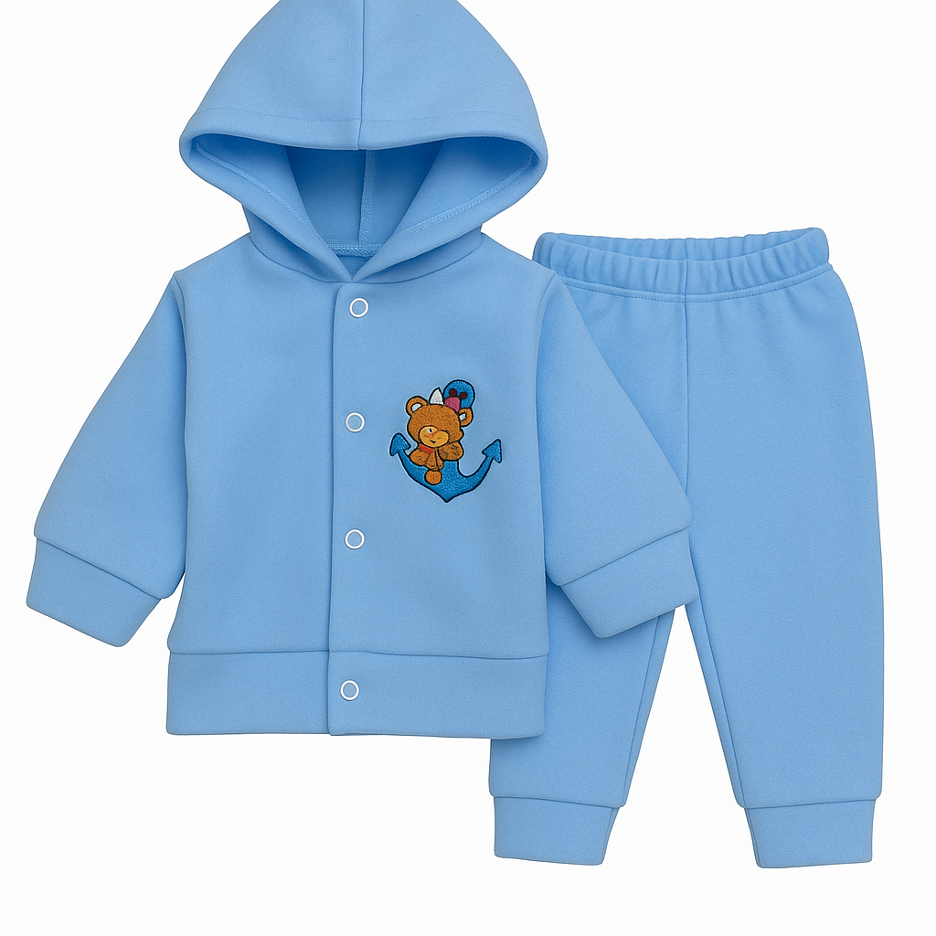 Conjunto de Soft com Capuz e Aplique Roupa de Frio Inverno Menino e Menina Meu Bebê Bebe Amor