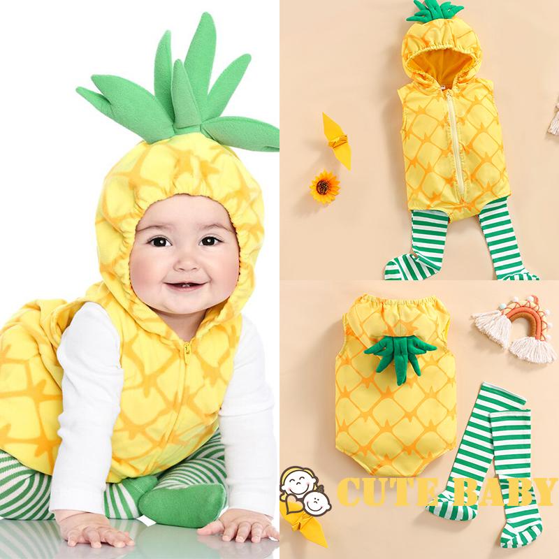 Conjunto De Roupas De Bebê Eph-Unisex Em Forma De Abacaxi Performance Palco Zip-up Romper Com Capuz + Meias Listradas