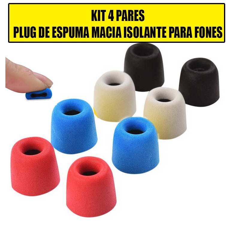 Kit 4 Pares Eartips (Espuma De Memória) p/ Fones de Ouvido Ponteira Borrachinha