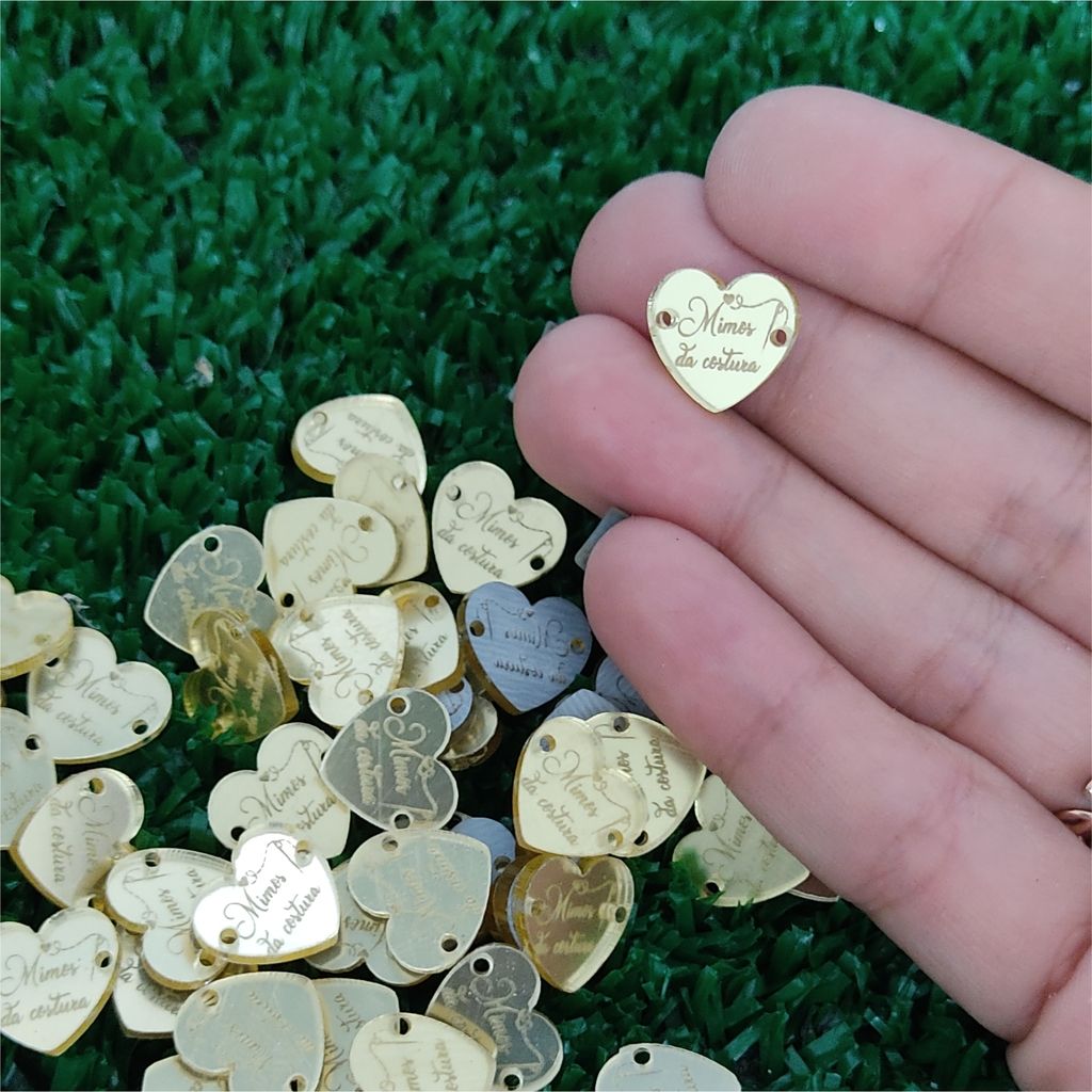 Etiqueta TAG Coração em Acrílico Espelhado Artesanto e Lembranças 1,5x1,5cm Kit com 50-75-100 unidades