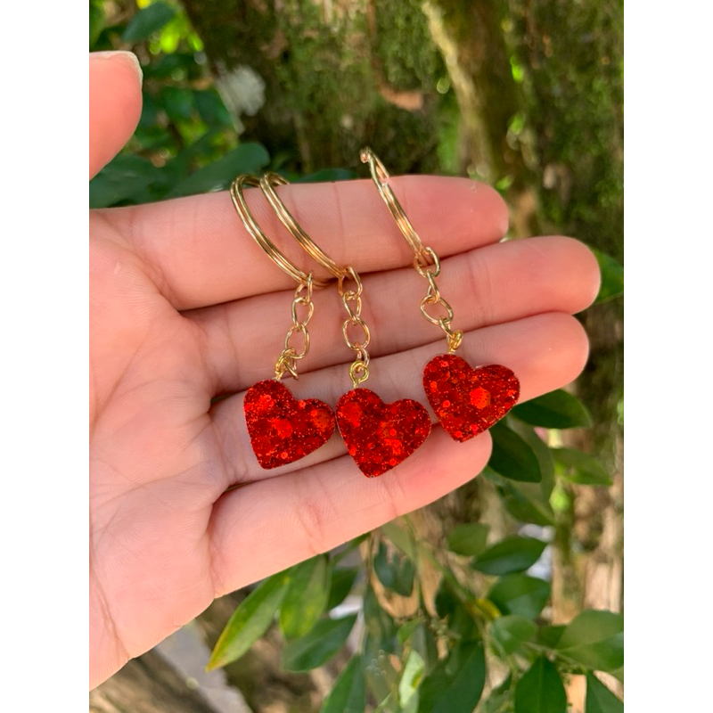 kit com 20 unidades mini chaveiros de coração personalizado em resina