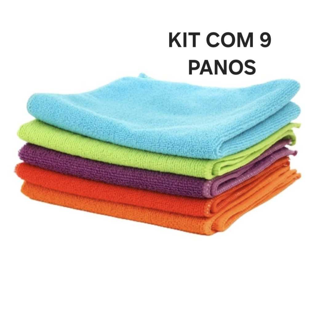 Kit Com 09 Panos Microfibra Flanela Limpa Vidro Multiuso Carro Reutilizável Toalha Mágica