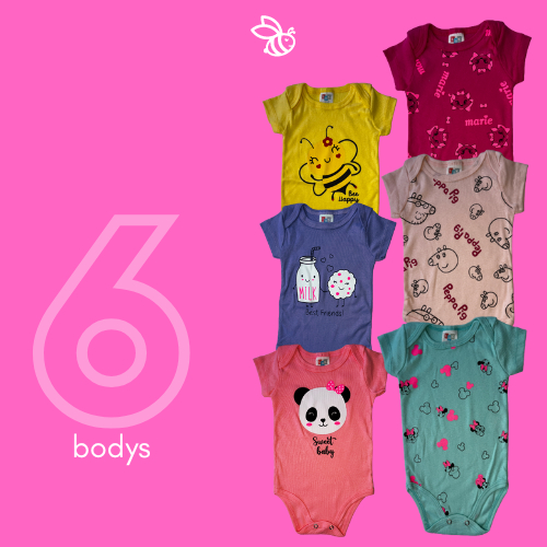 Kit 6 Peças Body Bebê - Menina/Feminino - Estampas De Personagens e Divertidas - Direto Da Fábrica - Roupa de Bebê