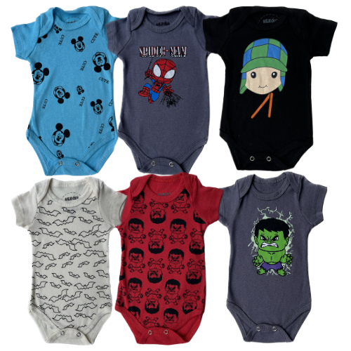 Kit 6 Peças Body Verão Menino/Masculino - Estampas De Personagens e Divertidas - Roupa de Bebê - Direto Da Fábrica