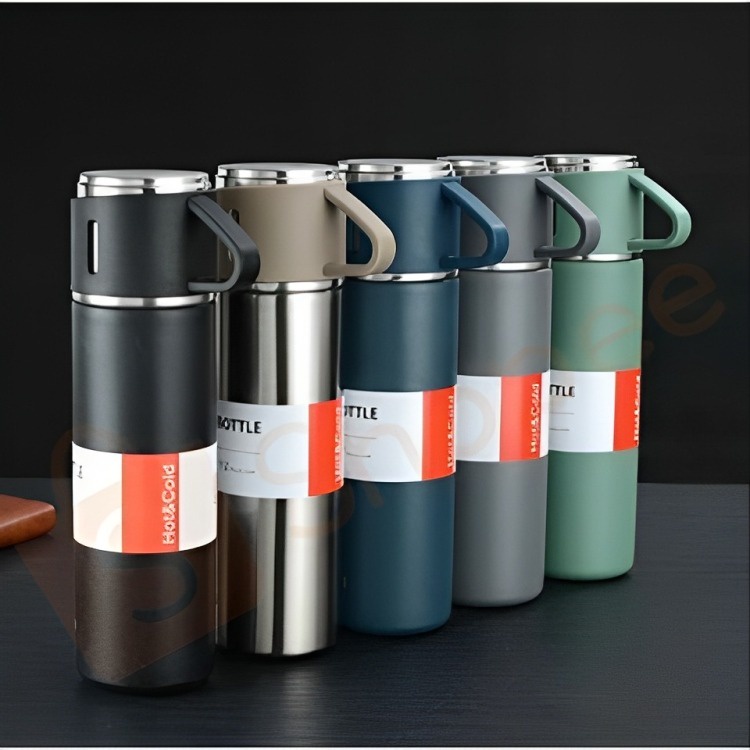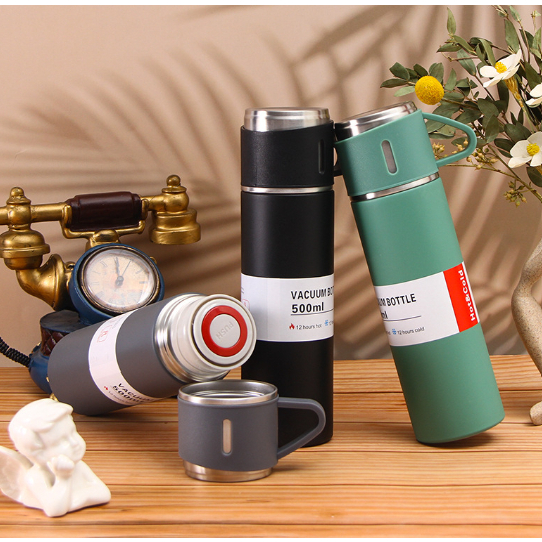 Kit Garrafa 500ML com 3 Xicaras Garrafa Termica Aço Inox Fosca Copo Termico