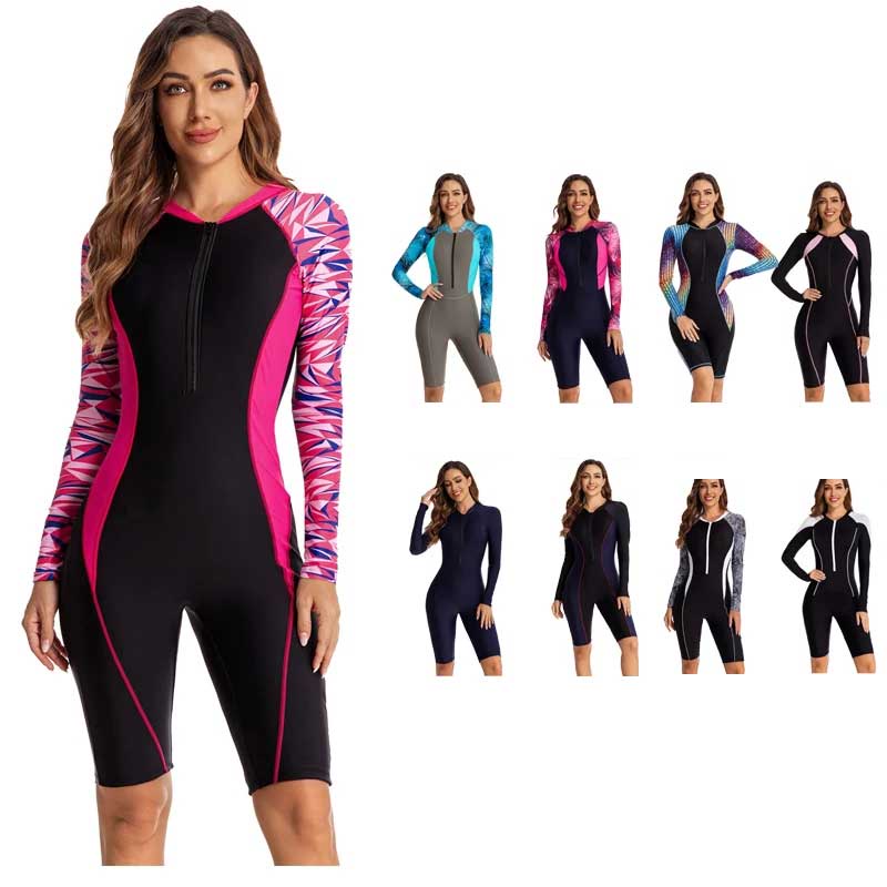 Protetores De Pele Femininos Manga Longa Zipper Peça Única Comprimento Do Joelho Macacão De Surf Traje De Banho Praia Trajes Com Almofada