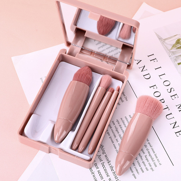 Mini Espelho De Maquiagem Portátil Com 5 Pcs Pincéis De Maquiagem