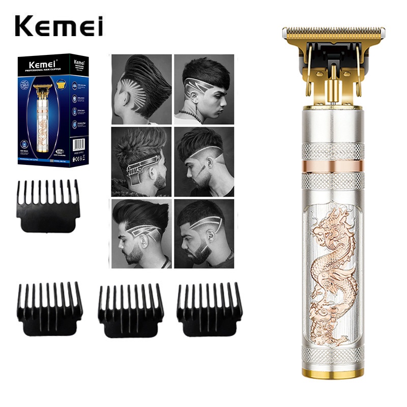 Kemei Vintage T9 0MM Máquina De Cortar Cabelo Elétrica Sem Fio Aparador De Profissional Para Barbear Masculino Isqueiro De Barba