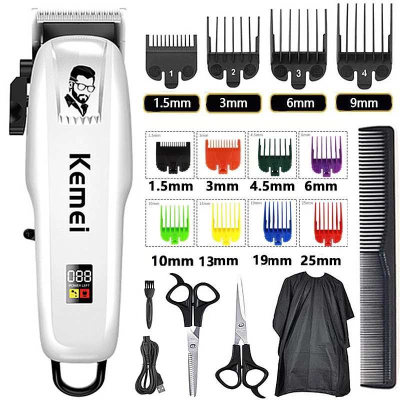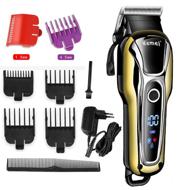 Kemei Barbeiro Máquina De Cortar Cabelo E Aparador Conjunto Profissional Sem Fio Zero Lacunas Barba Masculino Acabamento