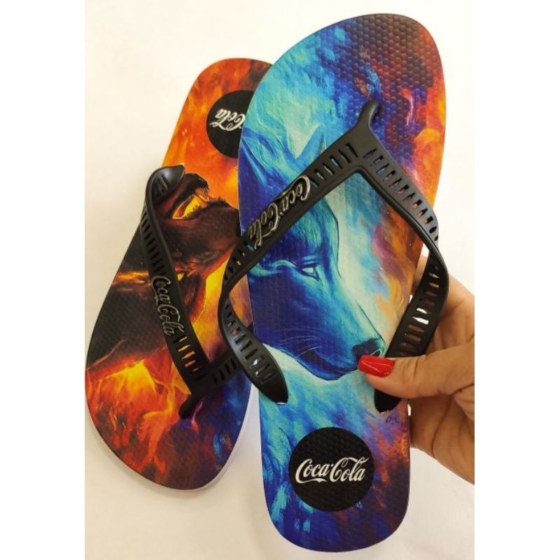Chinelo masculino estampado, sandalia coca cola masculina, chinela de praia.