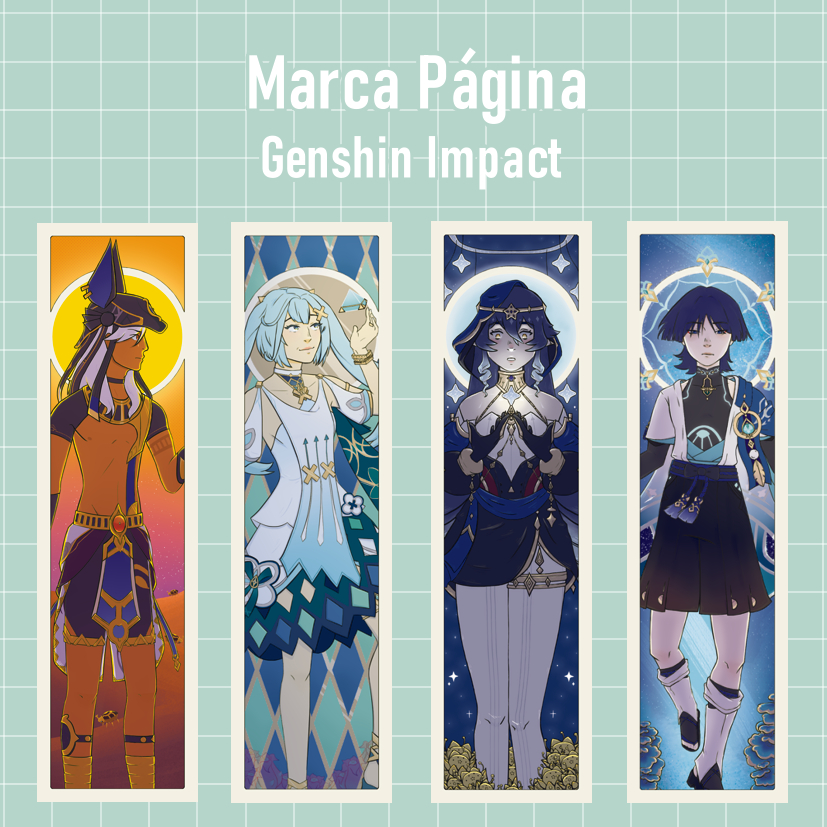 Marca página plastificado Genshin Impact - Cyno, Faruzan, Layla, Wanderer