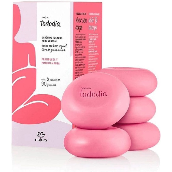 Sabonete em barra framboesa e pimenta rosa Natura Tododia 5 unid 90g cada