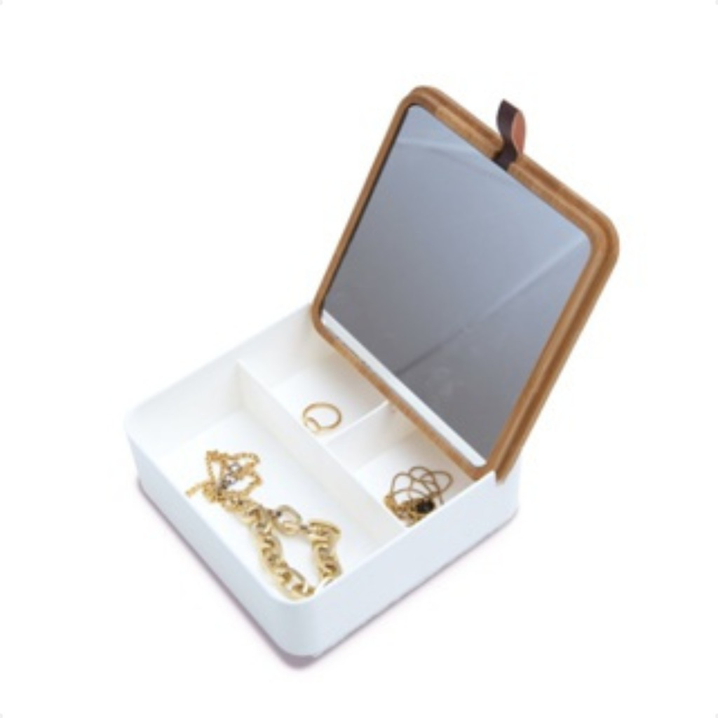Porta Jóias Oikos Quadrada com Tampa de Bambu e Espelho - Caixa Organizadora