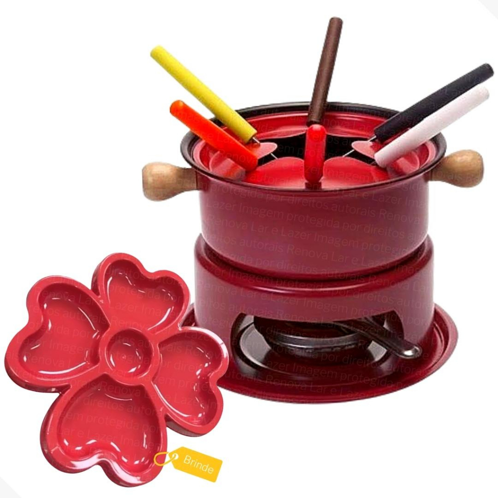 Conjunto Aparelho Fondue Chocolate Queijo Carne Panela Antiaderente Doce Salgado 11 Peças Culinária