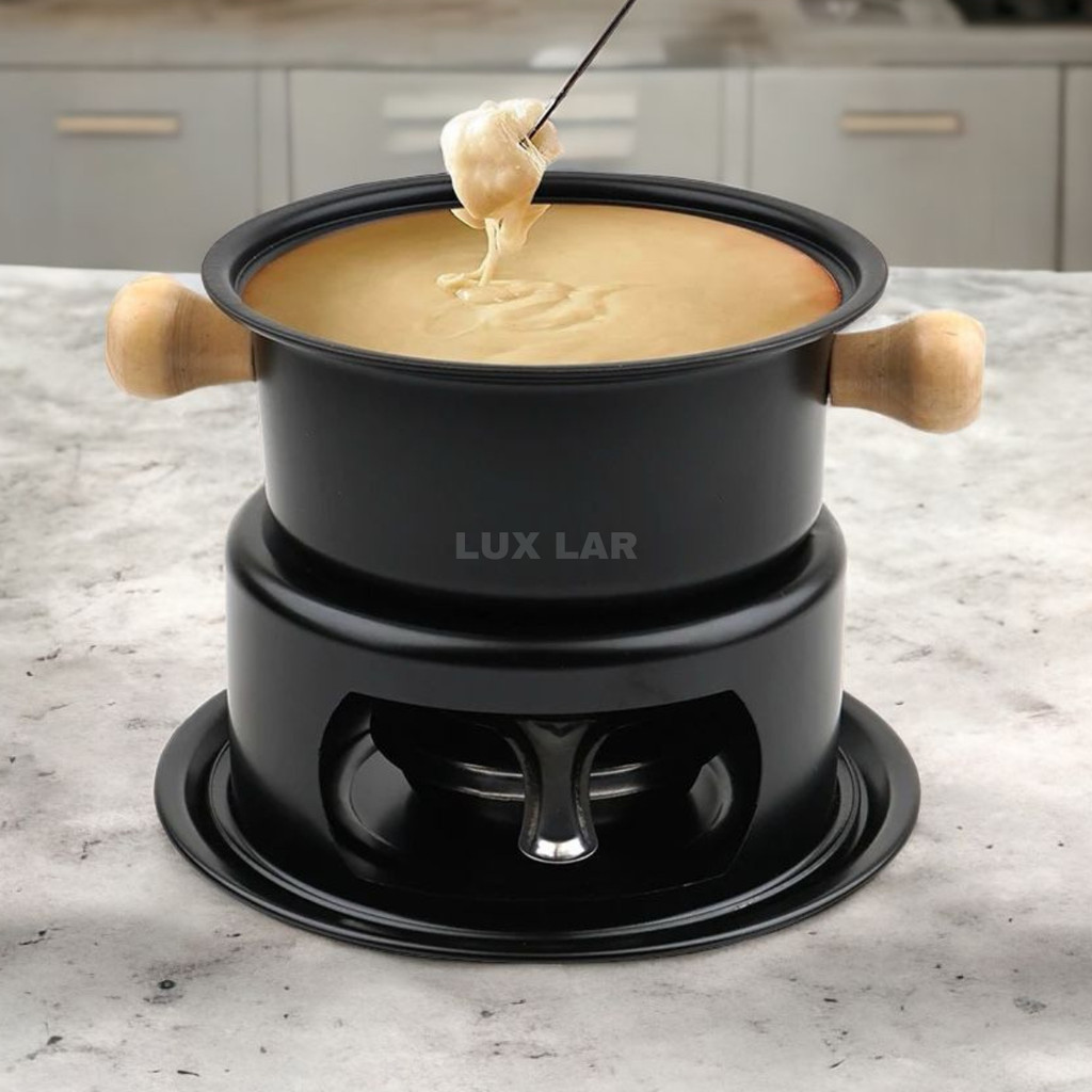 Conjunto Aparelho Kit Fondue C/11 Peças Preto Completo Chocolate E Queijo