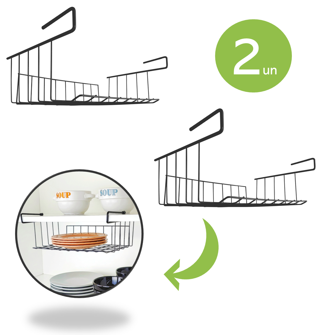 Kit 2 Cesto Suspenso Organizador Armario Cozinha Preto