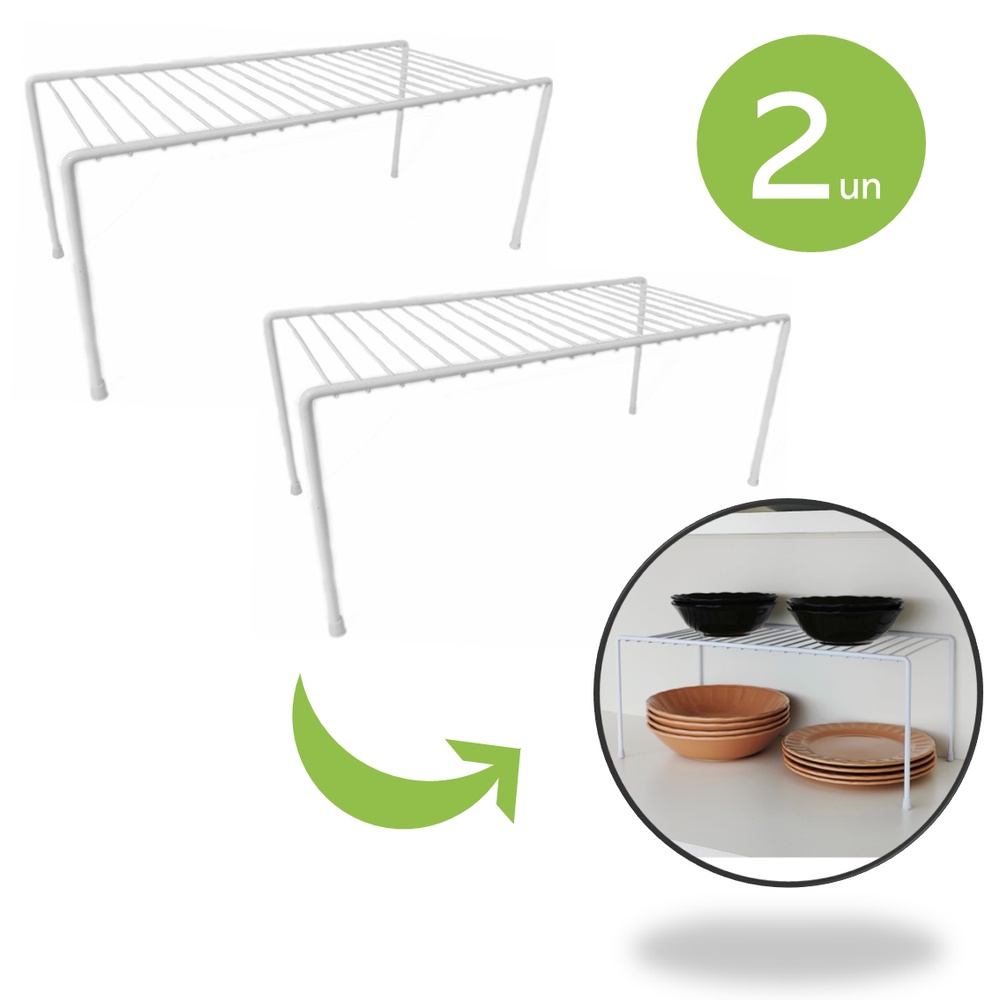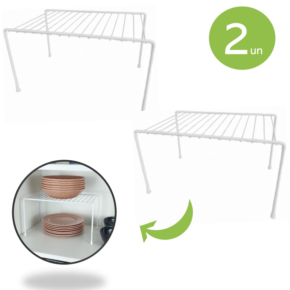 Kit 2 Organizador Armario Cozinha Prateleira Aço 31cm Branco