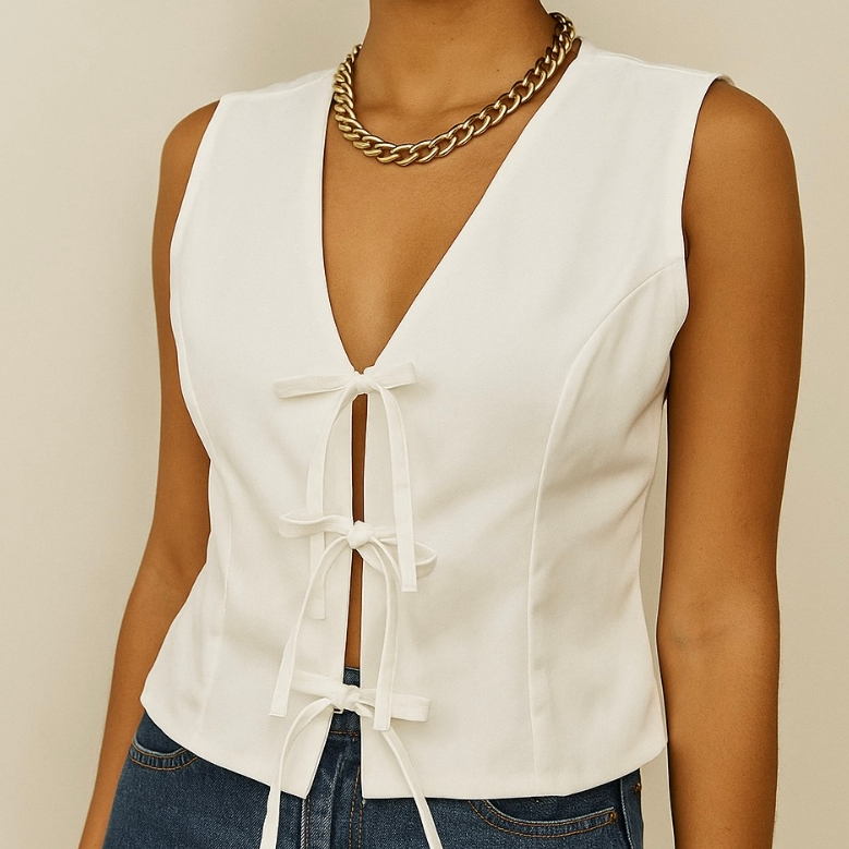 Colete casual de alfaiataria com amarração moda feminina elegante blusa de laço