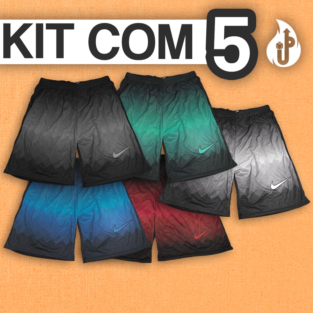 Kit Com 5 Shorts Bermuda Dry Fit Esportiva Treino Futebol Masculino