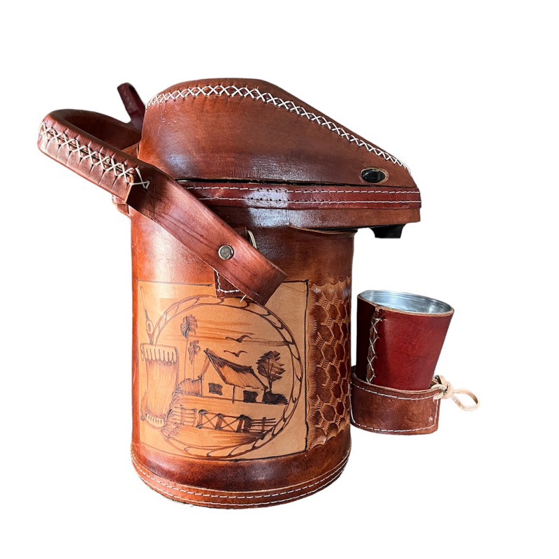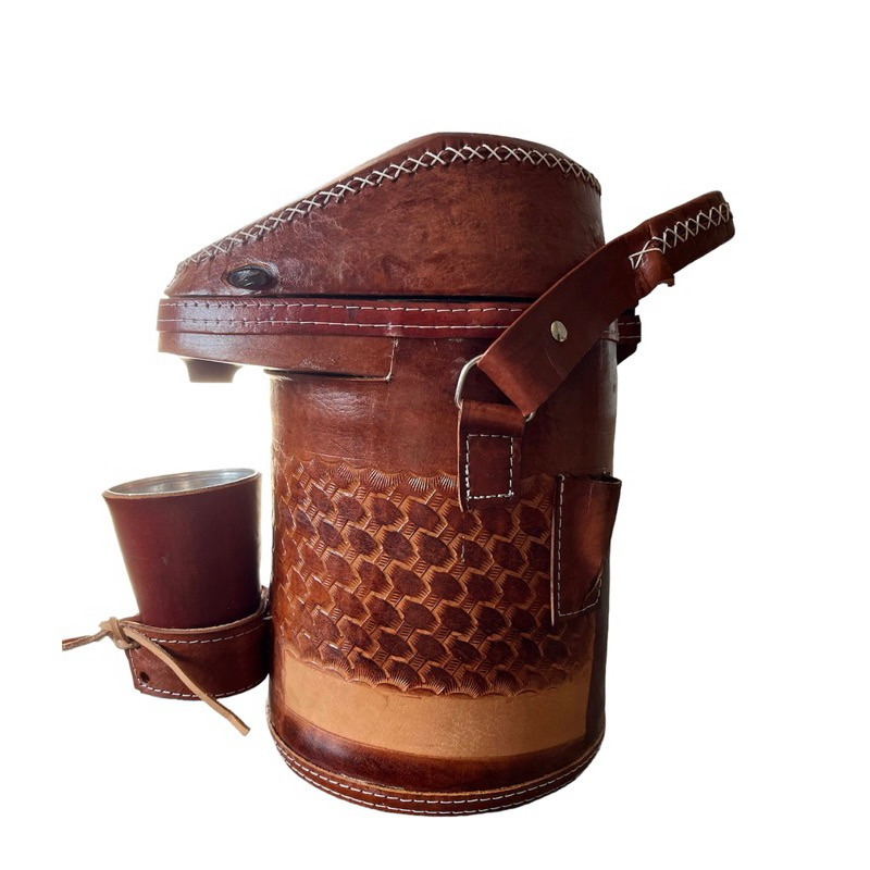 Garrafa Térmica em Couro inox Completo Copo Tereré/Chimarrão/Chá/Café 2,5L