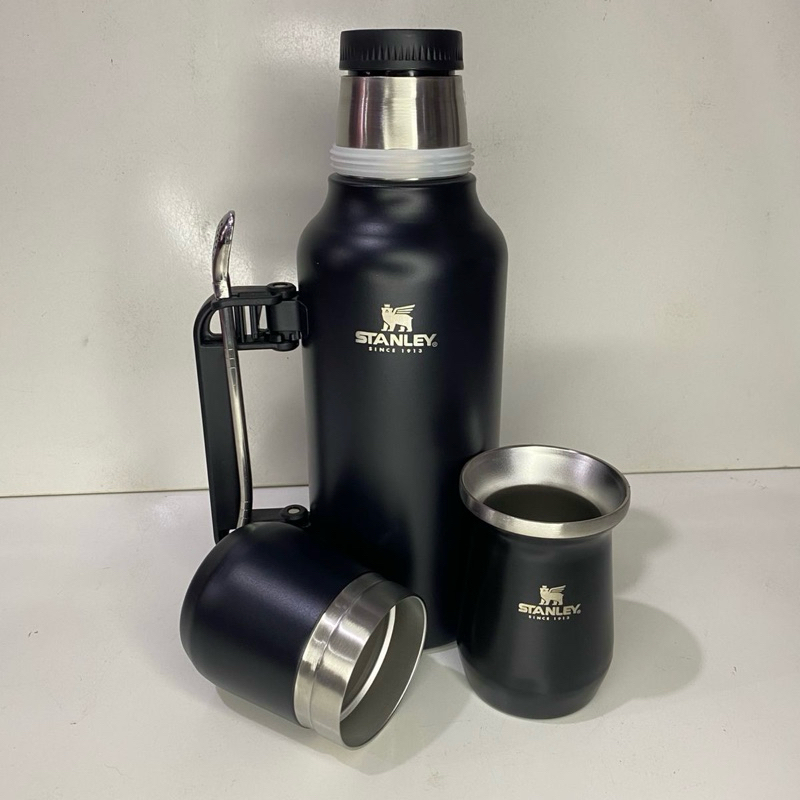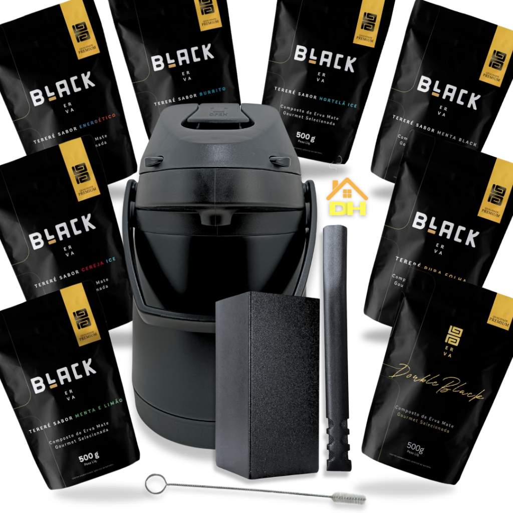 Kit Tereré Completo Garrafa Térmica 2,5L Copo Térmico E Bomba Pretos Erva Black 500g