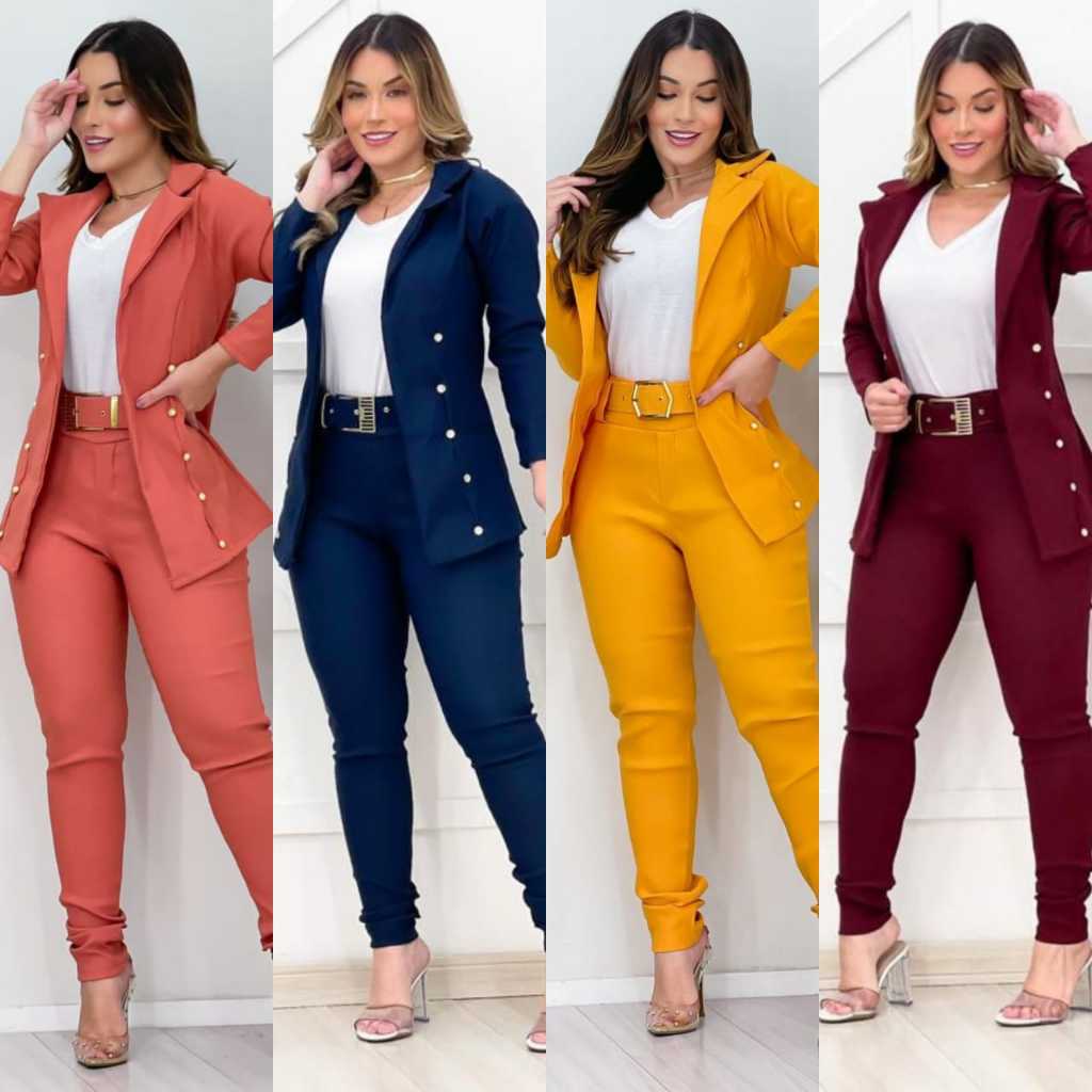 Conjunto Feminino Calça e Blazer Moda Social Elegante