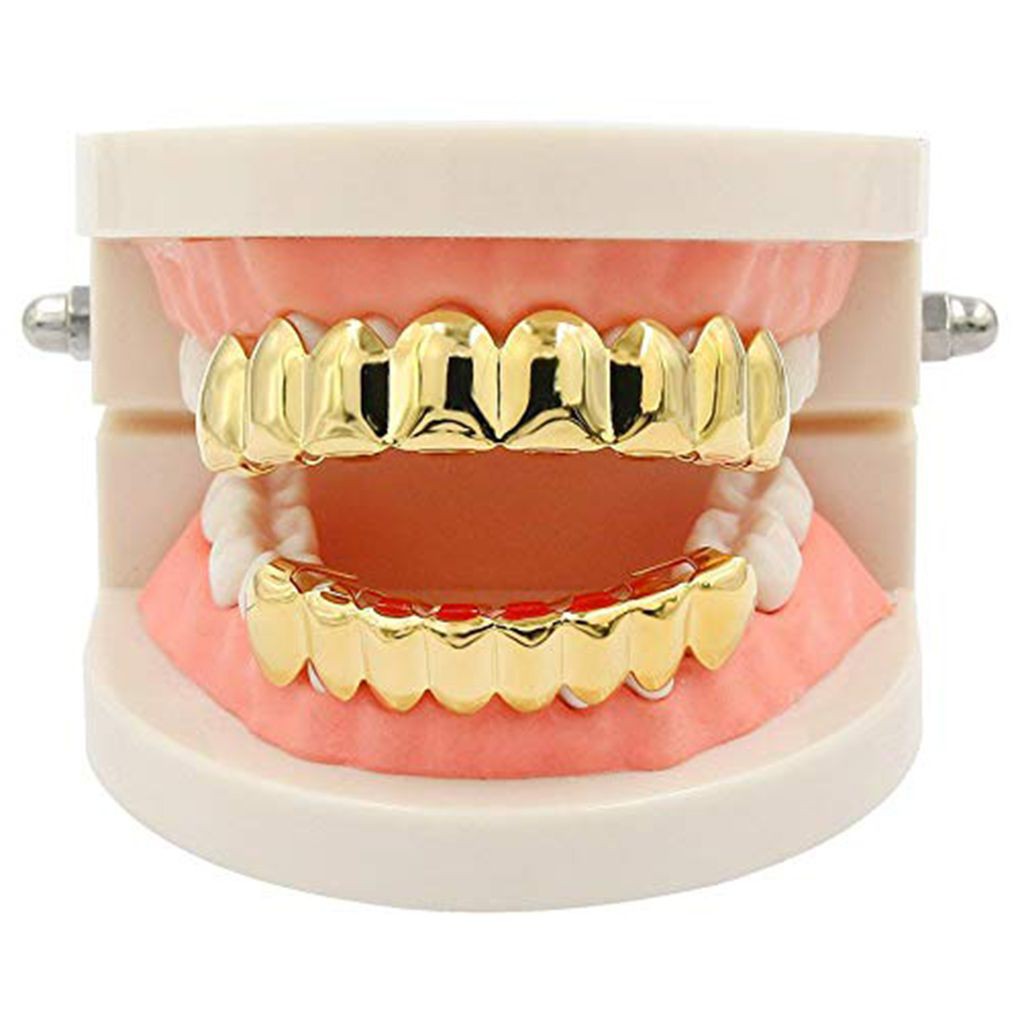 Conjunto De Presente De Natal Hip Hop Oito 8 Top E 6 Bottom Ouro Chapeamento Dentes Falsos