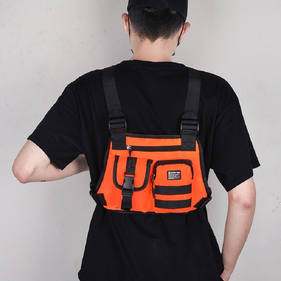 8 Cor Funcional Saco Peito Moda Bala Hip Hop Streetwear Colete Saco Pacote De Cintura Mulheres Rig Peito Preto Saco